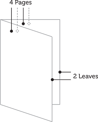 A single sheet within a book is called a Leaf. Each side of a Leaf is called a Page or Printed Page (pp) and is usually numbered as such above or below the body text. Example: If your book comprises of 128 pages this will be 64 stand alone leafs in total between the front and back cover.